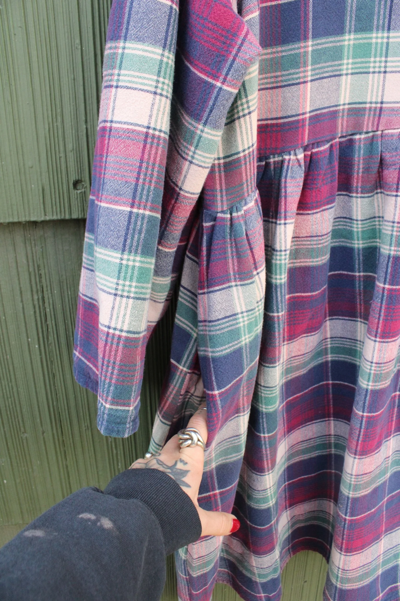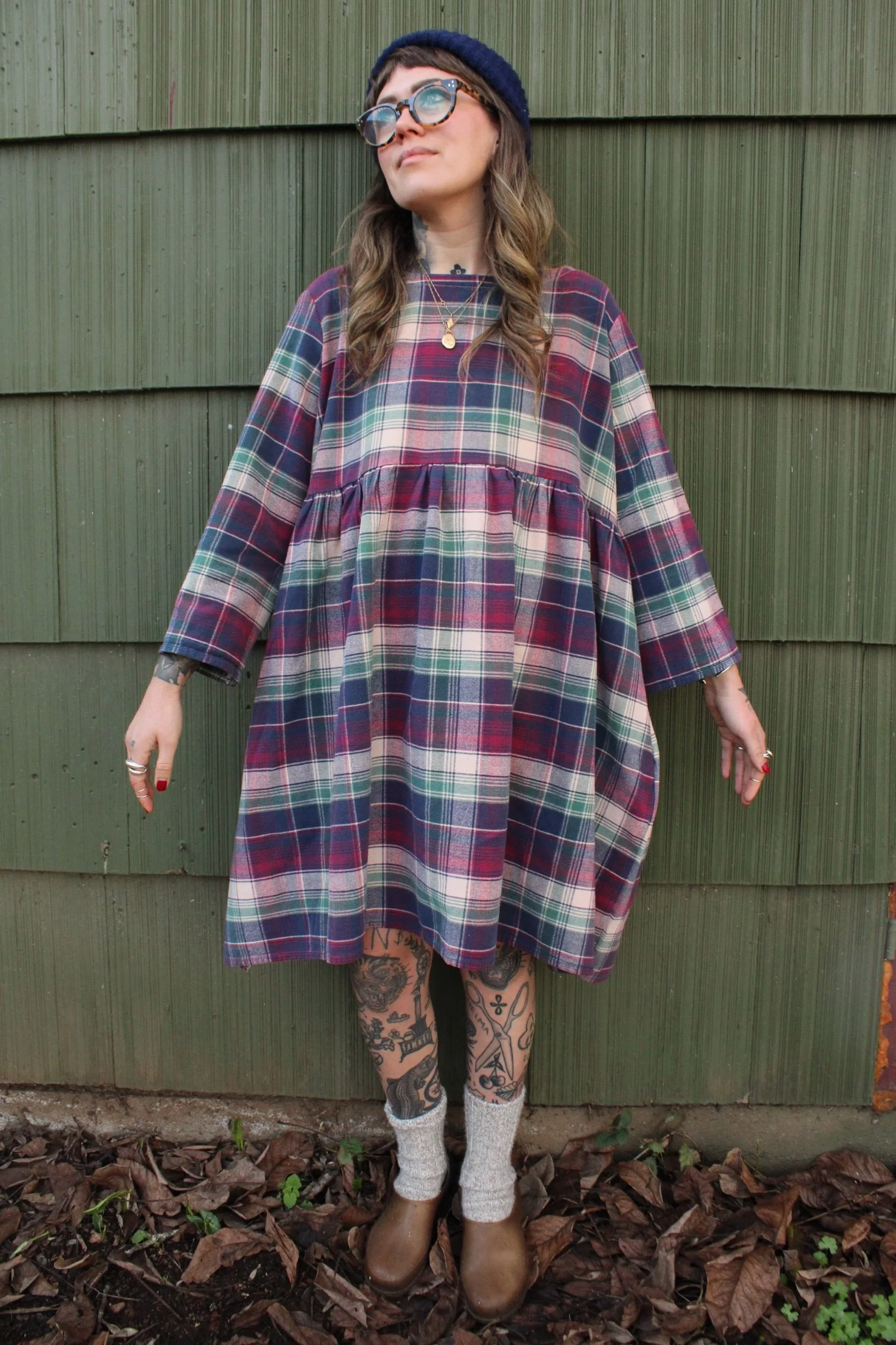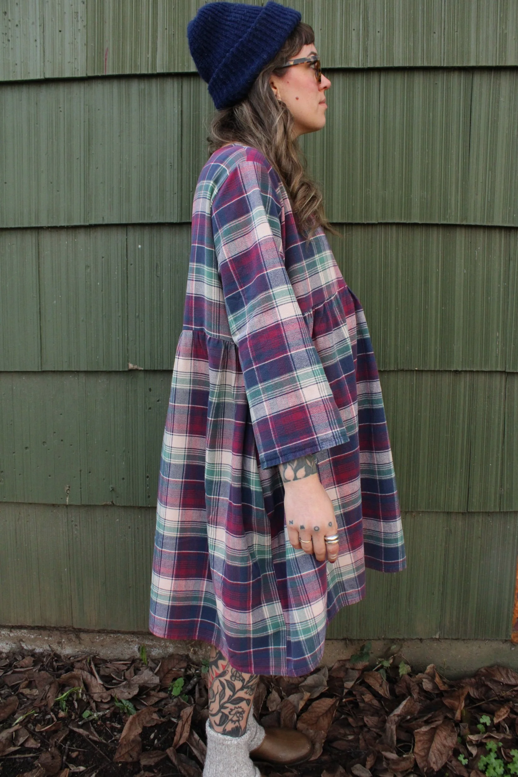 vintage 100% cotton bedsheet material turned Babydoll Dress using my pattern in a size large