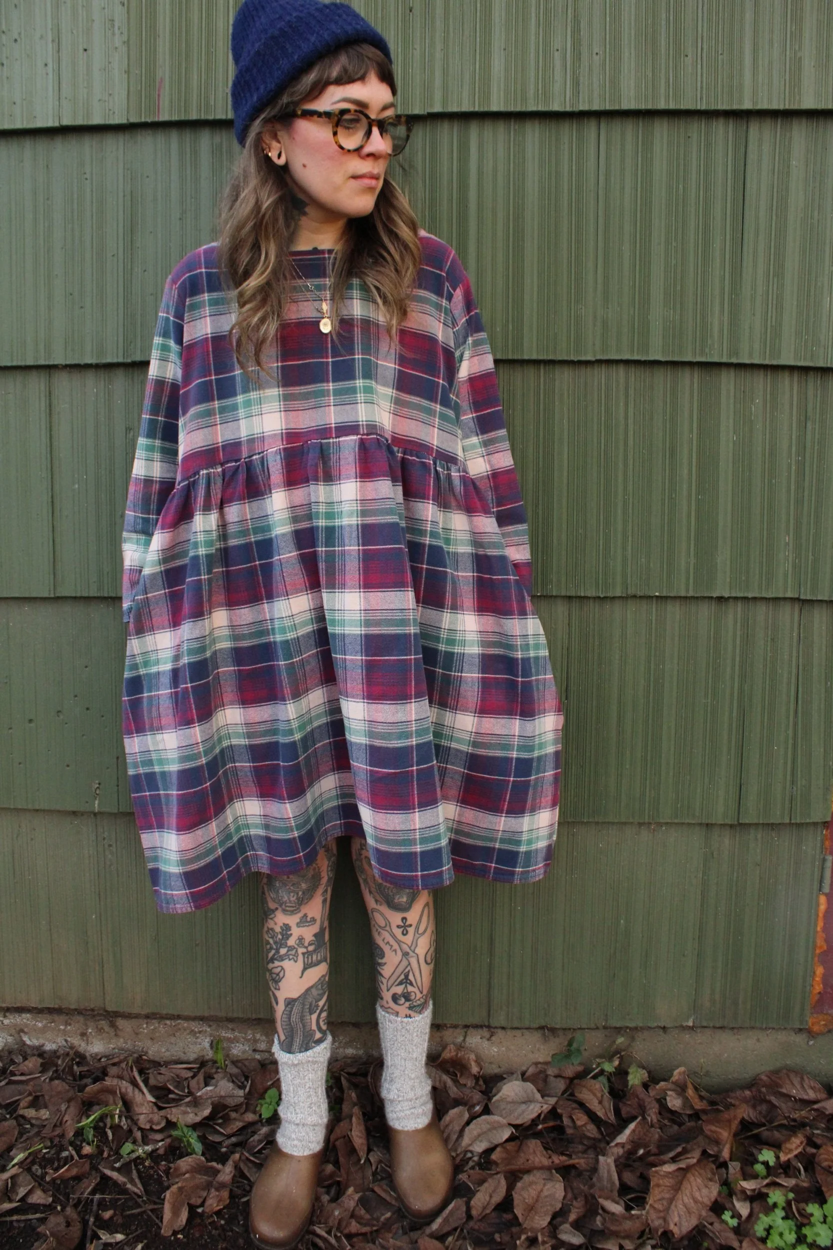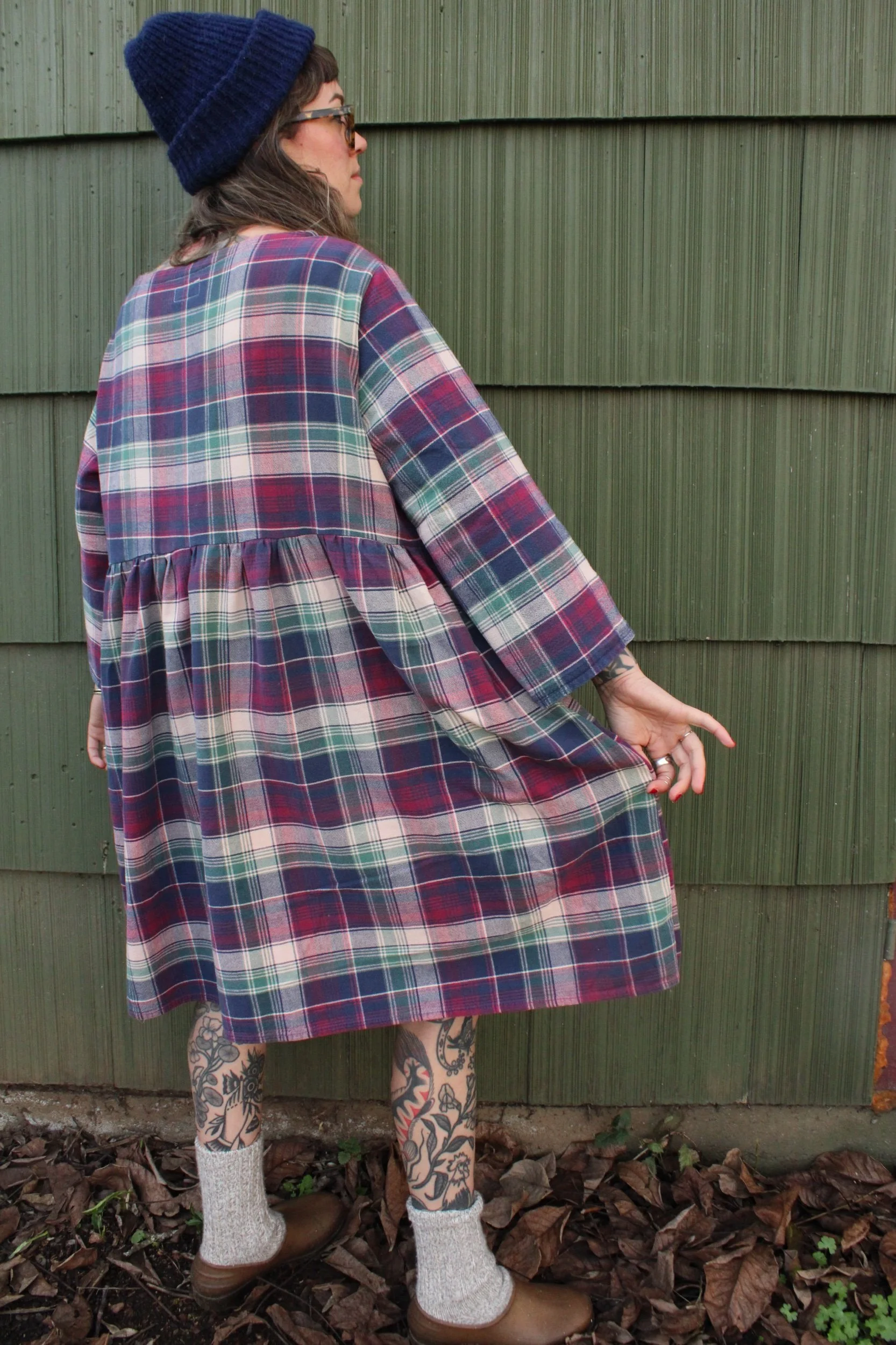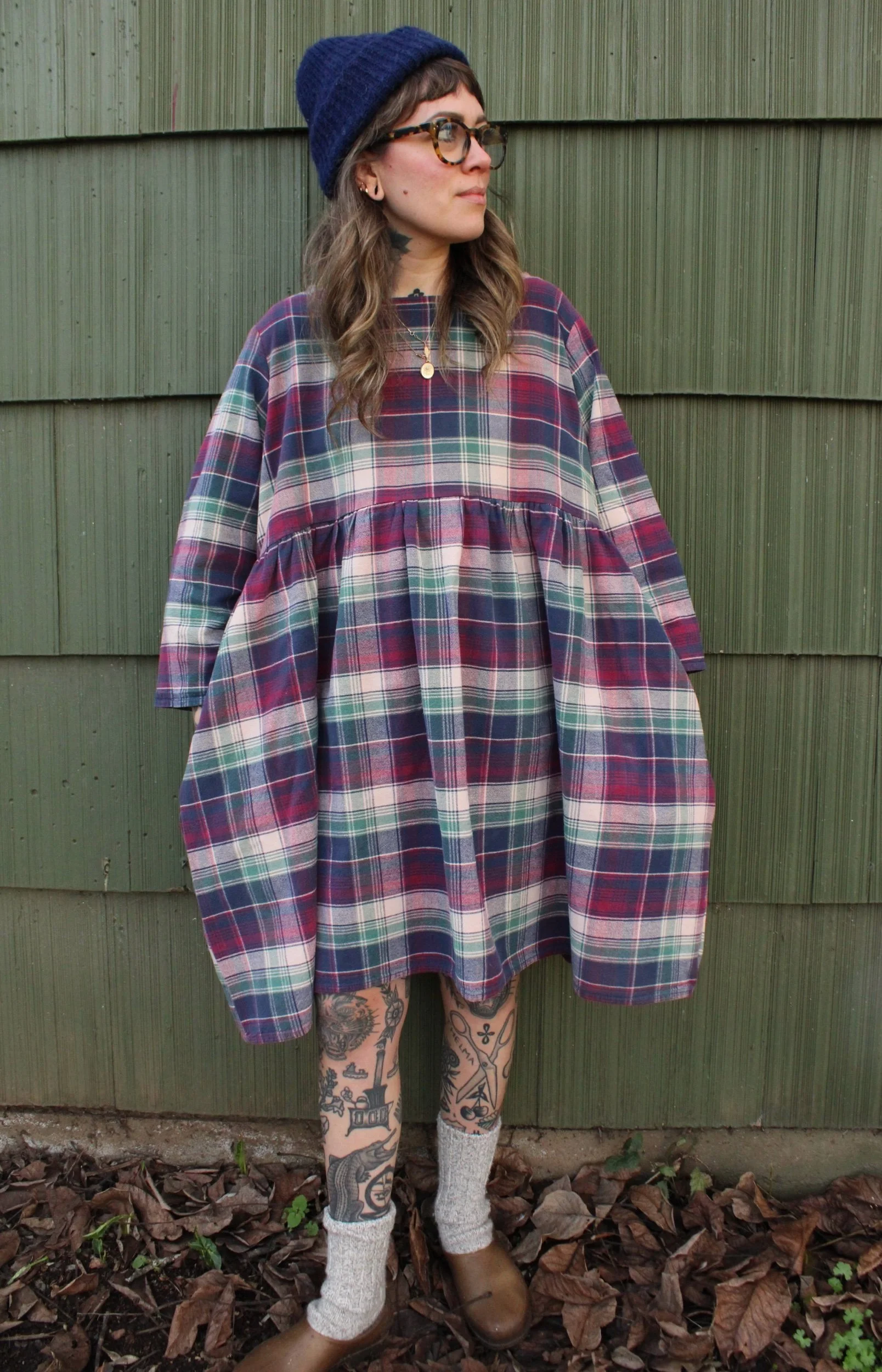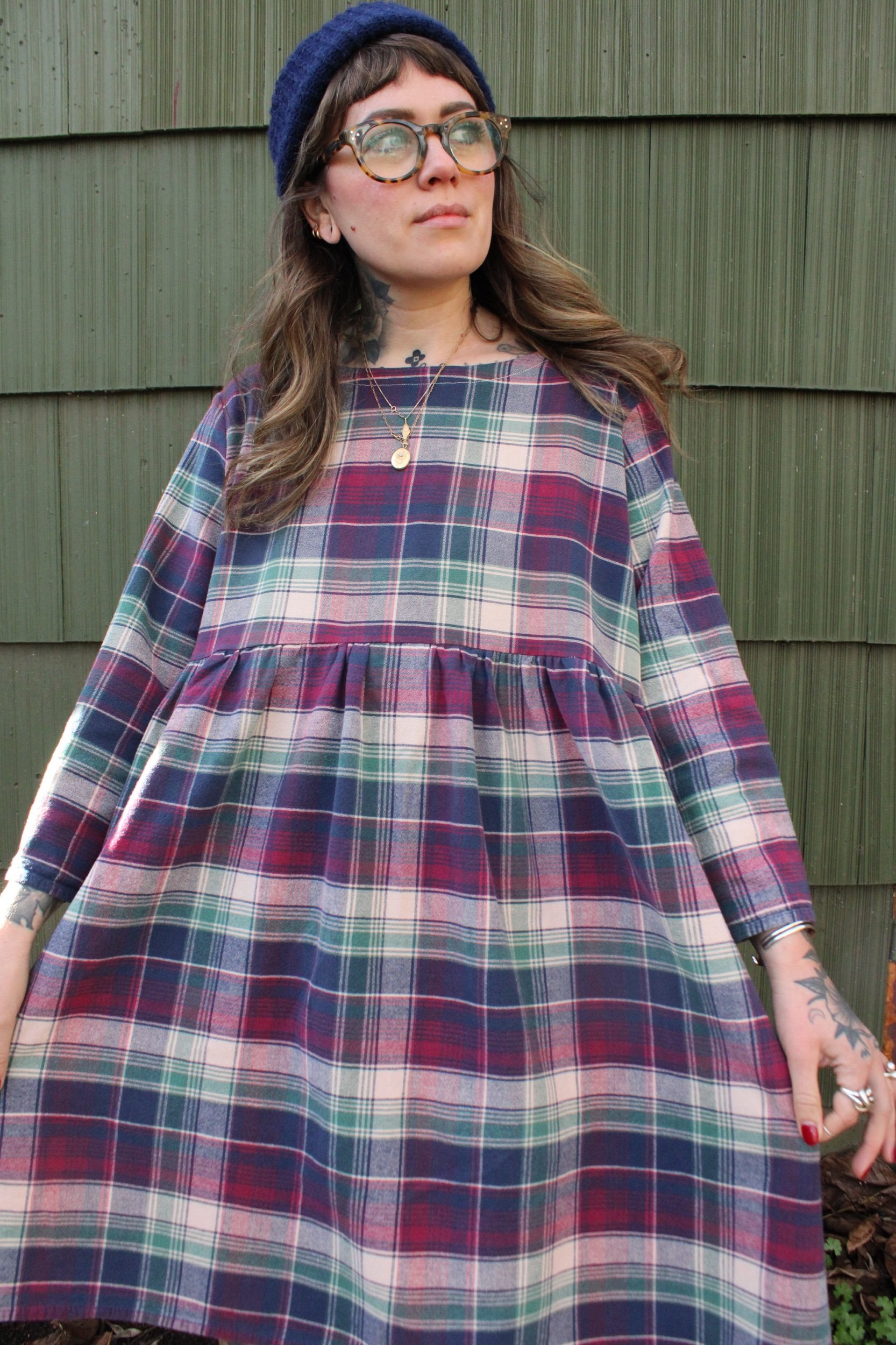vintage 100% cotton bedsheet material turned Babydoll Dress using my pattern in a size large