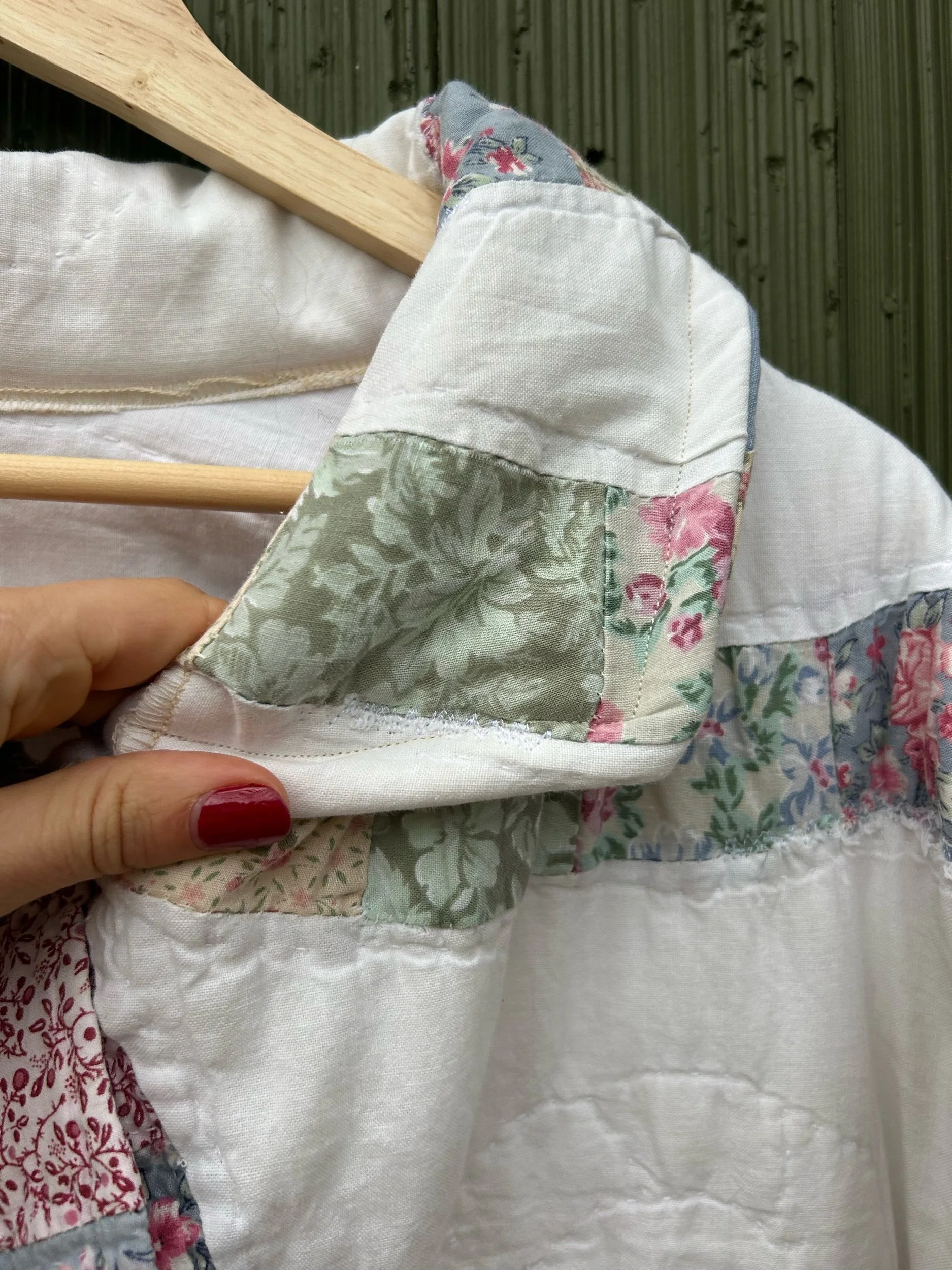 All items are handmade with vintage material. Holes, stains and other minimal damage to be expected. hand wash, and hang dry. All measurements done lying flat. No refunds of exchanges. Please review policies before checkout.