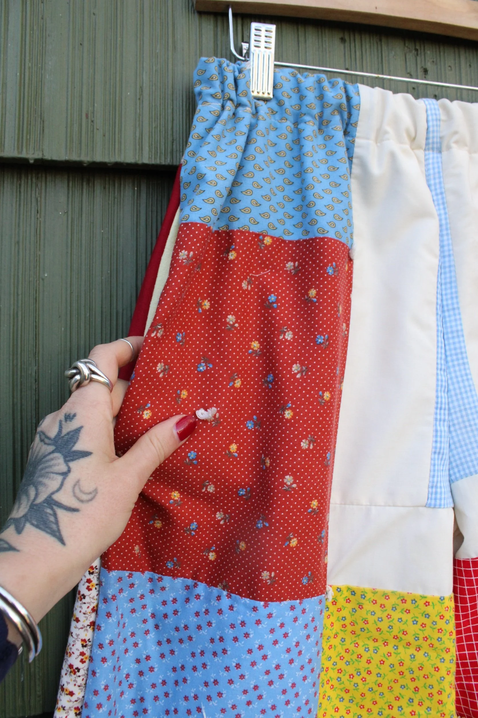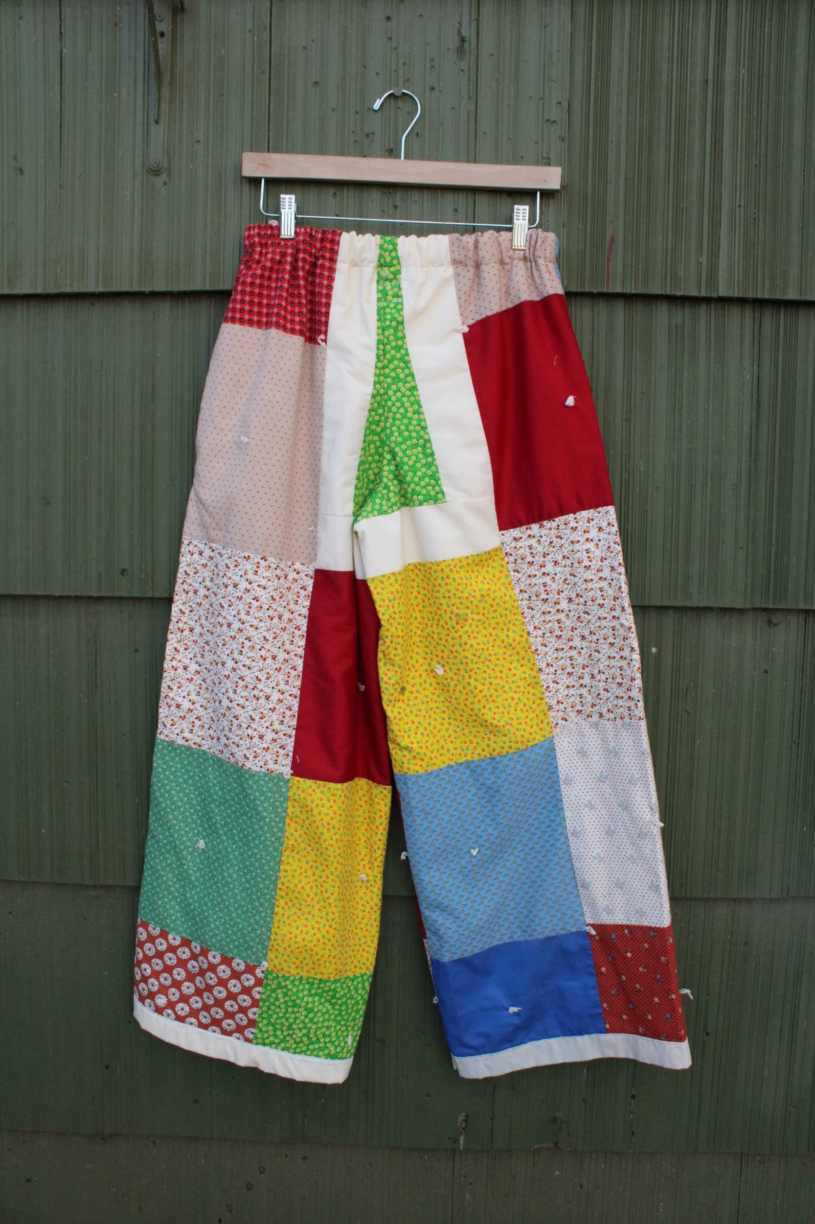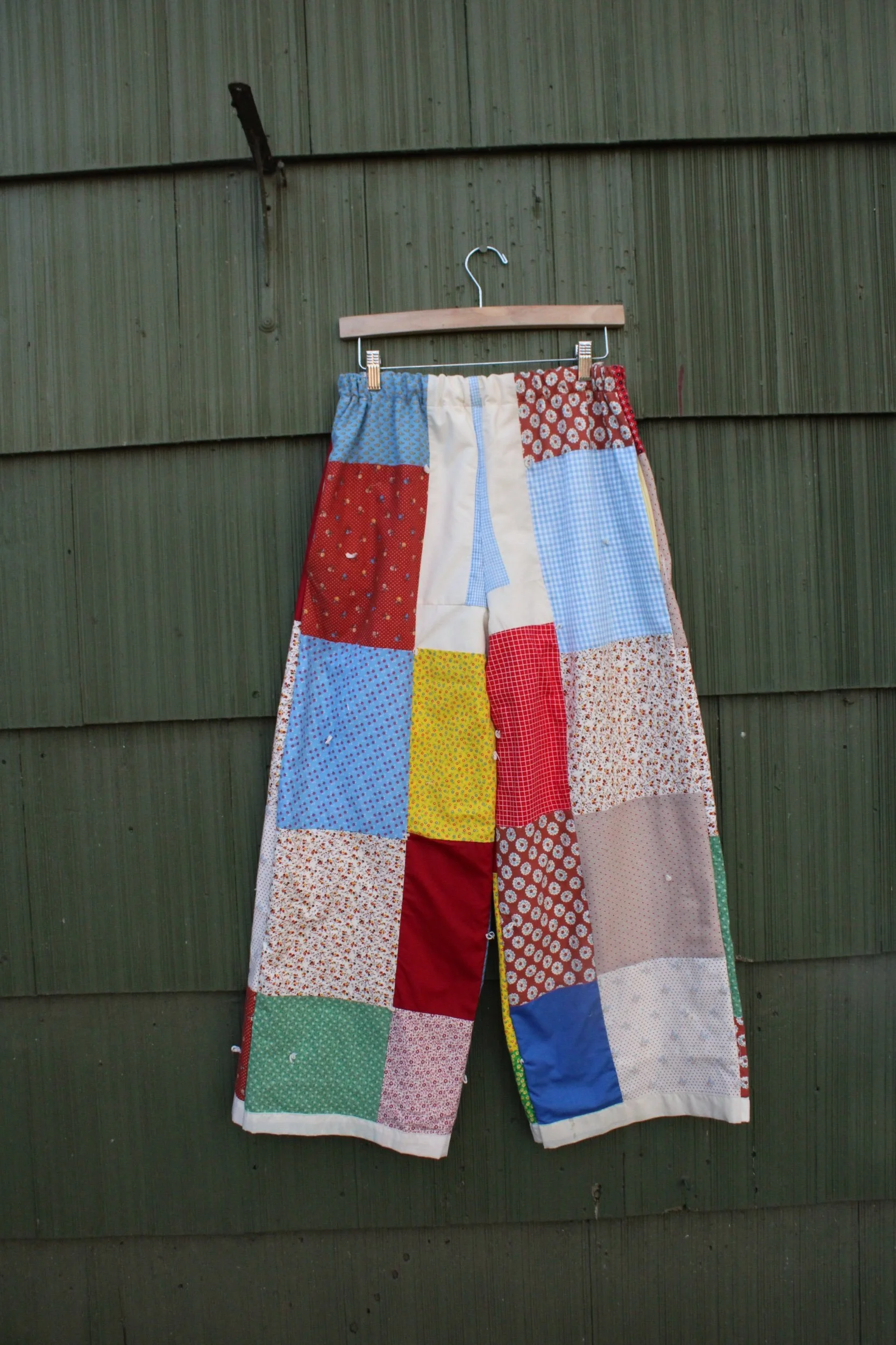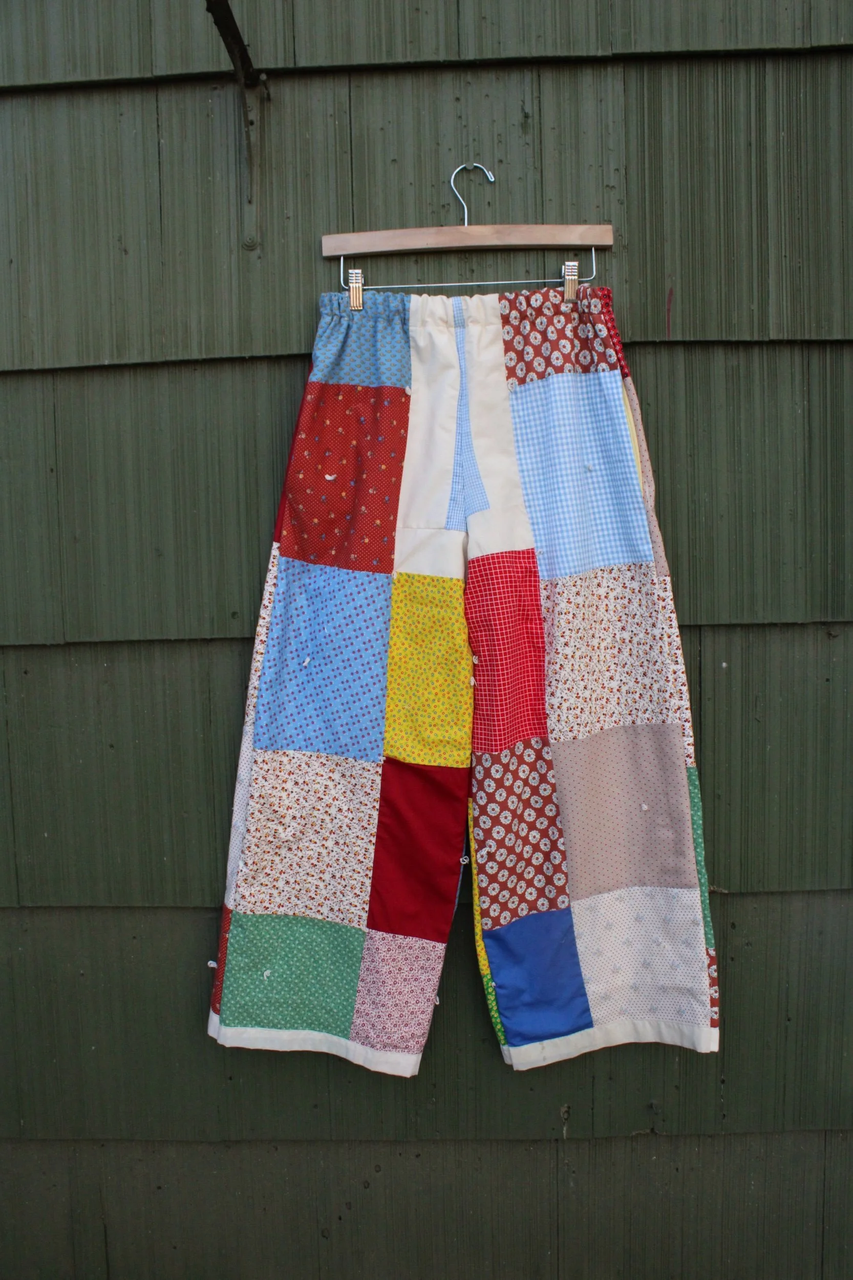 vintage thinner quilt turned comfy wide leg pants with side pockets