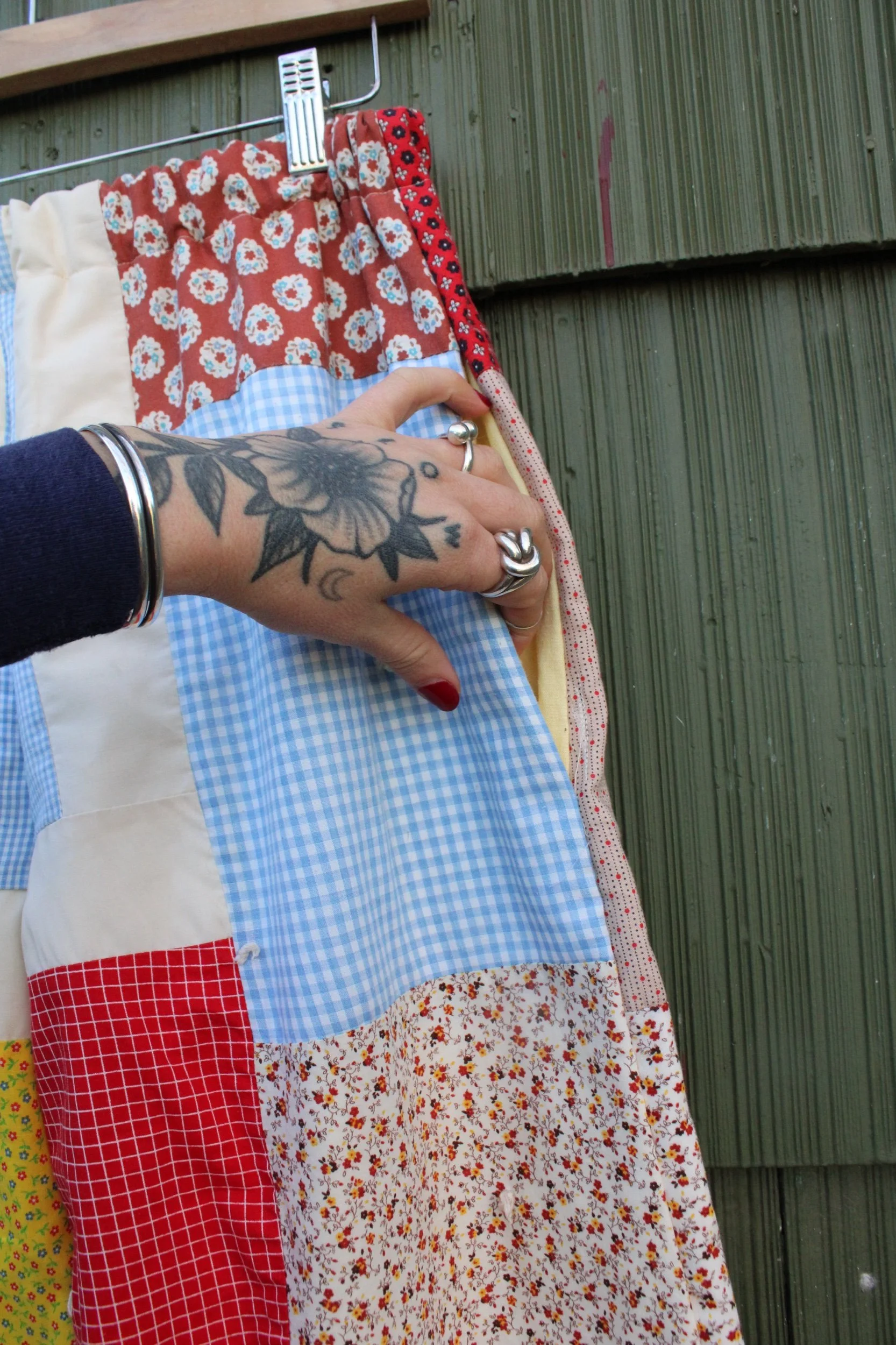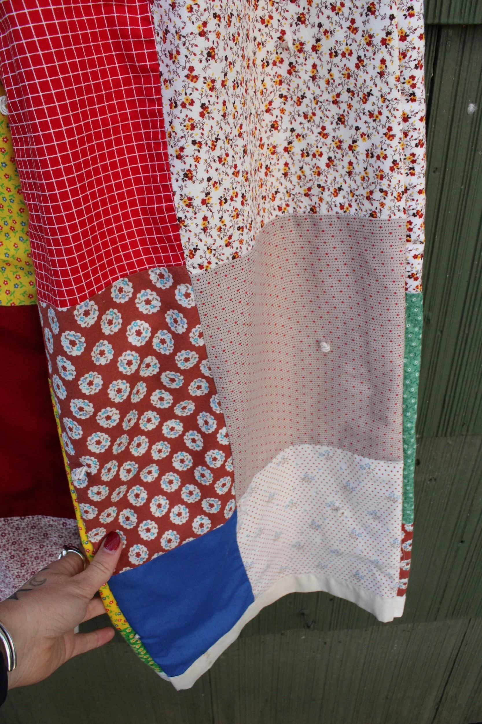 All items are handmade with vintage material. Holes, stains and other minimal damage to be expected. hand wash, and hang dry. All measurements done lying flat. No refunds of exchanges. Please review policies before checkout.